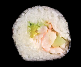 Por dentro: Camarón, philadelphia, aguacate y pepino.