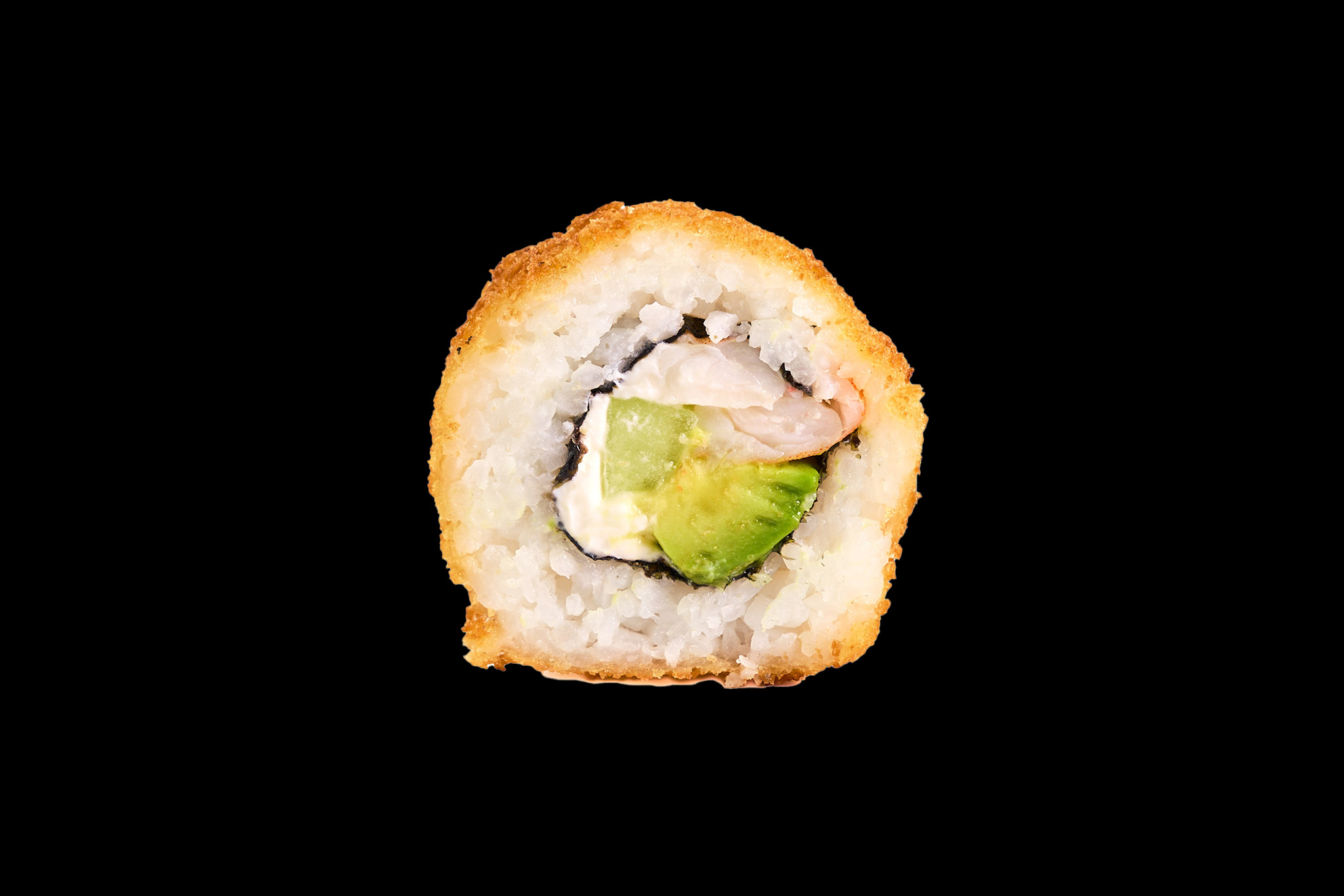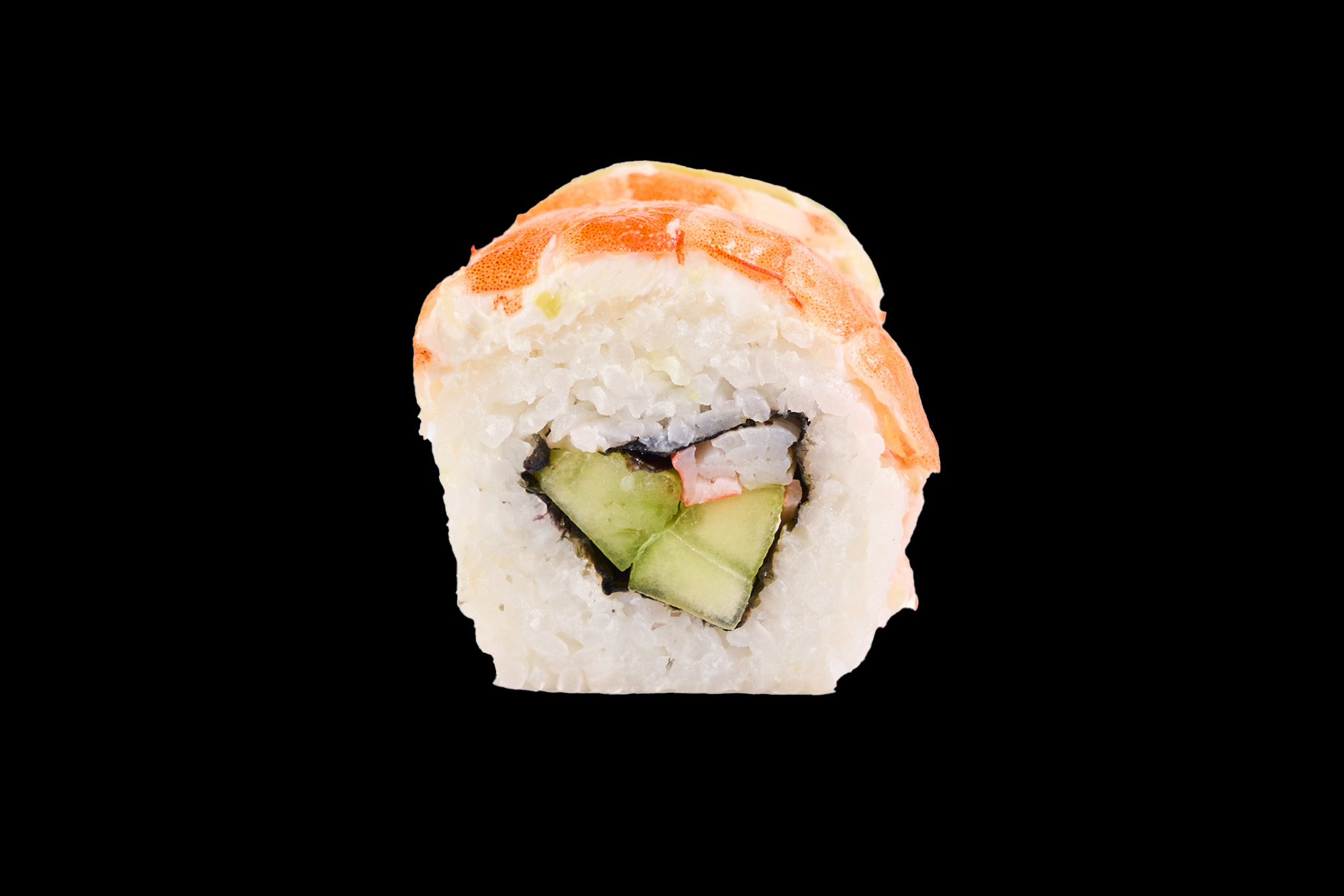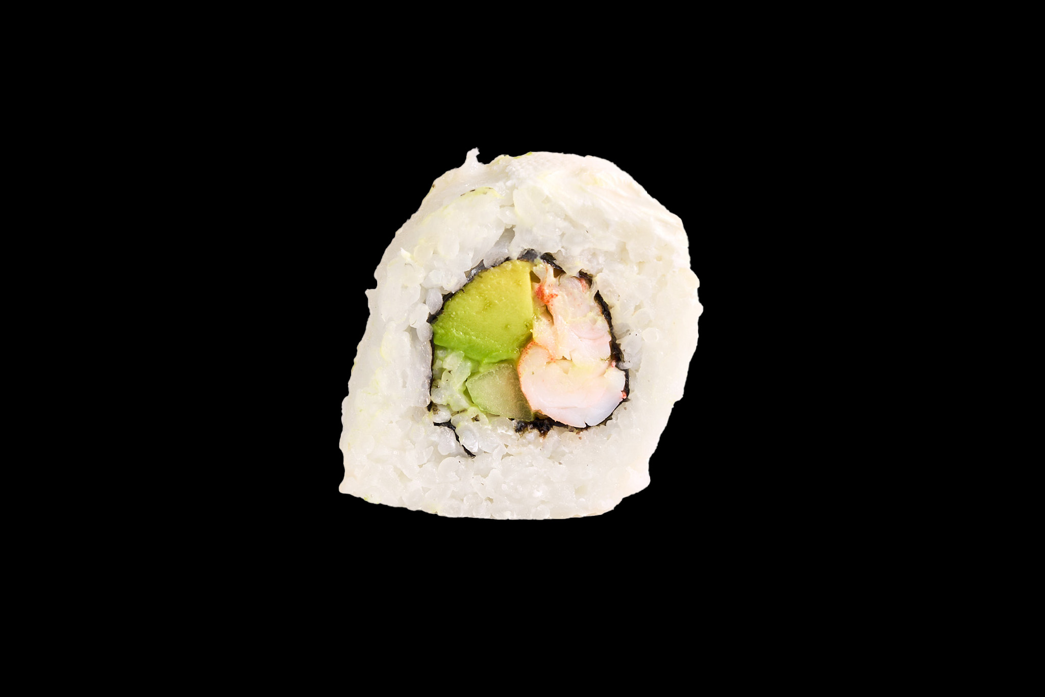 Por dentro: Camarón, philadelphia, aguacate y pepino.